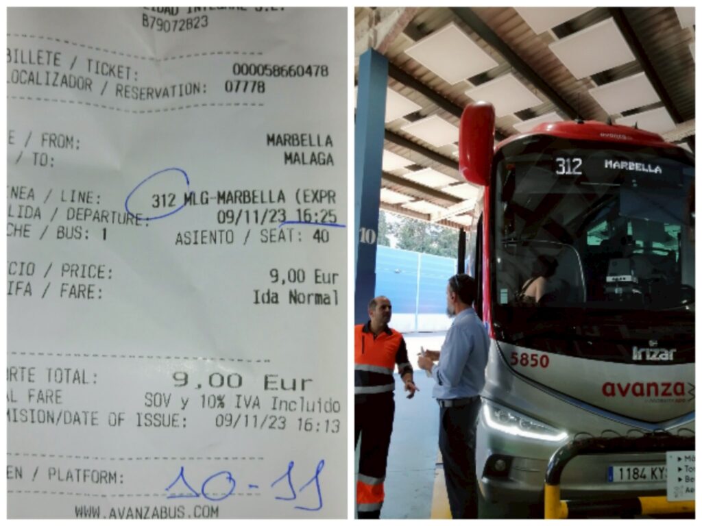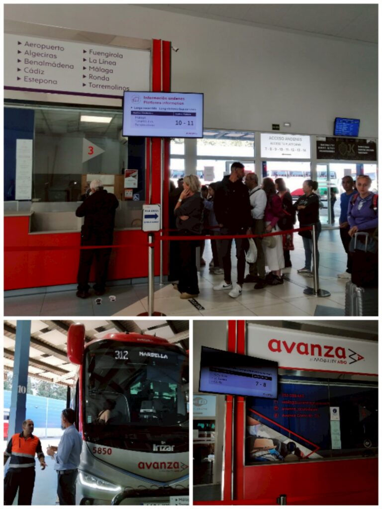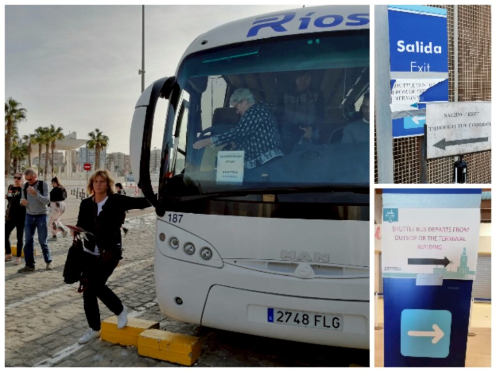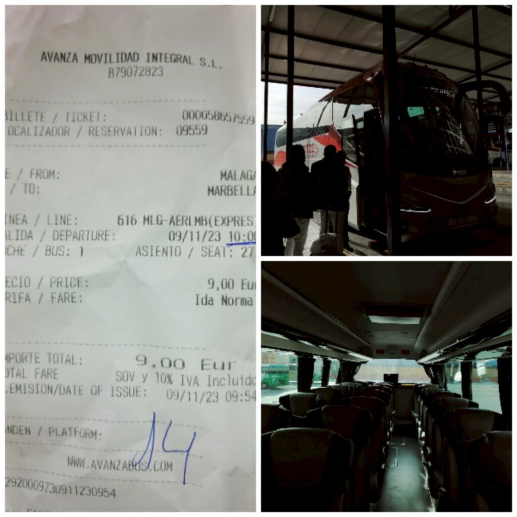 2023年11月,抵達馬拉加港後,港務局貼心地提供免費接駁車送旅客出港區(步行需 15–20 分鐘)。先搭公車抵達馬拉加公車總站(靠近火車站),再轉乘長程公車前往馬貝拉: