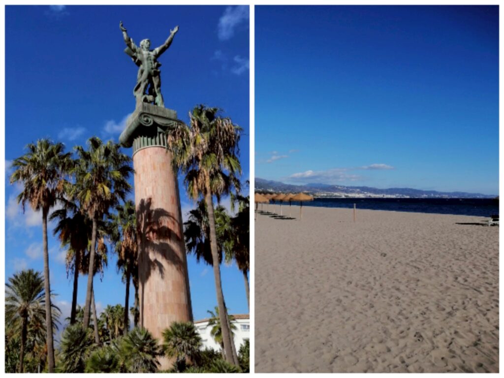 走在海濱步道時意外發現熟悉的超現實美學!馬貝拉沿岸展示了多件**達利(Salvador Dalí)**的銅雕作品(Esculturas de Dalí),藝術與海景相互輝映,也讓城市增添一份文化底蘊。這段散步實在太享受 ❤️