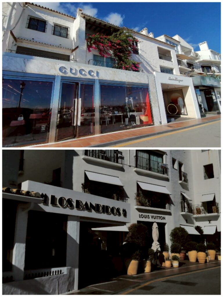 這裡是西班牙知名的高檔碼頭區,停滿豪華遊艇,岸邊一整排 LV、Gucci、Chanel、Dior… 等精品店林立,宛如露天的時尚伸展台。✨