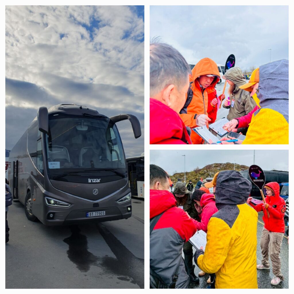 郵輪靠岸後,搭接駁船上岸,一出港口管制區就能看到工作人員舉牌等候,辨識度相當高。當天郵輪 11 點抵達,須搭接駁船上岸,約中午 12 點準時出發。遊覽車空間舒適,座位旁設有 USB 充電孔(無 Wi-Fi),對於需要隨時拍照、錄影的旅人來說非常實用。若因天候因素導致郵輪無法靠岸,行程亦可全額退款,對郵輪客而言相當安心。