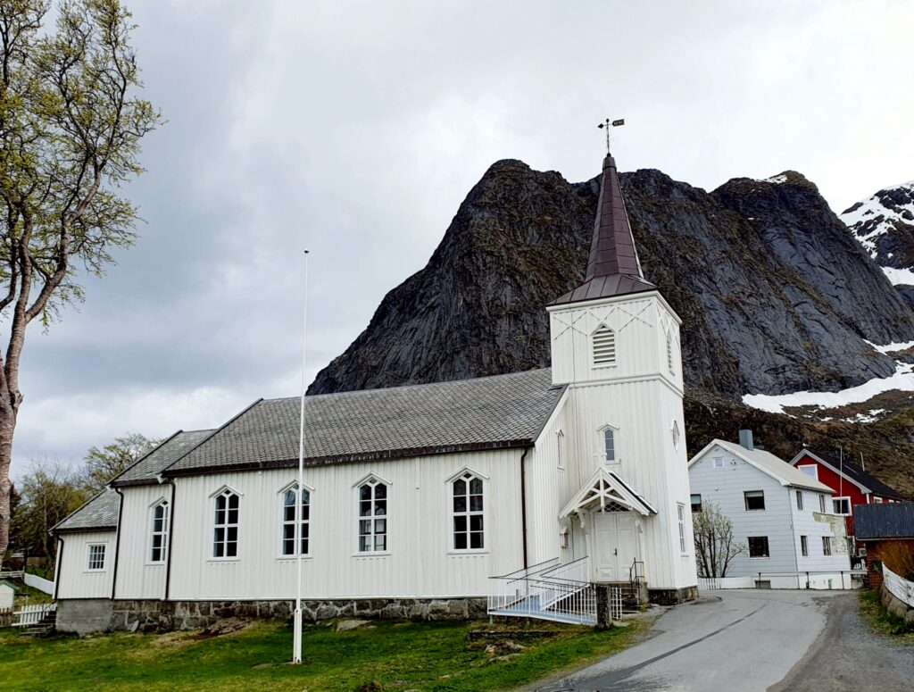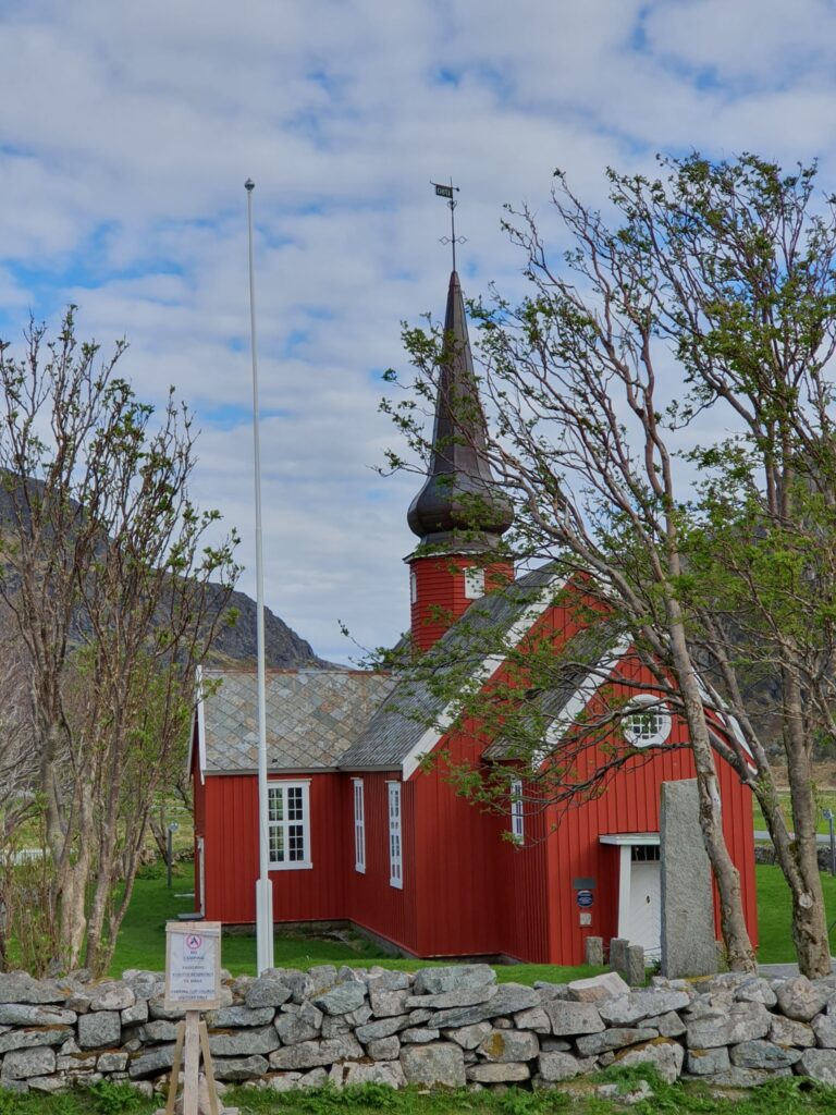 建於 18 世紀的紅色木造教堂,是羅弗敦群島歷史最悠久的教堂之一。外觀樸實卻極具北歐特色,周圍被群山與草地包圍,靜謐而莊嚴,讓人短暫感受當地居民的信仰與生活節奏。